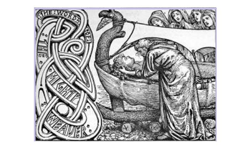 Ég veit ekki hvaðan þessi mynd er upphaflega en heimildum ber ekki saman um hvort hún á að sýna útför Baldurs eða komu Kveld-Úlfs til landsins. Kveld-Úlfur var aldraður þegar hann fór út til Íslands (til þess að vera hjá sonum sínum) og lést á leiðinni.