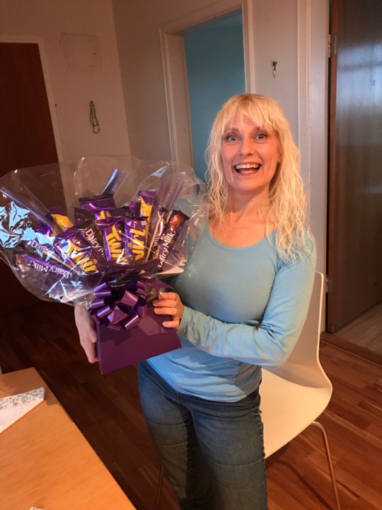 Froskaherferðin mín fór ekki fram hjá vinafólki okkar sem kom í mat í gærkvöld. Þar sem þau töldu hana merki um að mér þætti sérstaklega vænt um Kostkó, ákváðu þau að færa okkur alveg sérstaka gjöf úr froskabúðinni sjálfri. Alla sagði mér að þau hefðu verið lengi að velja enda er smekkvísi þeirra með eindæmum. Þau duttu loks niður á sérstakan súkkulaði „bouquet“ sem tekur flestum blómvöndum fram að glæsileika og er neysluhæfur í þokkabót og hentar því nýtingarfasista einkar vel.