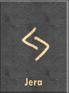 Jörð er uppskerurúnin. Nafnið táknar í senn jörðina og árið og felur í sér þá hugmynd að hafi maður á annað borð sáð í akur sinn og annast hann vel sé nú komið að uppskerutíð. Hún er auðvitað ekki varanleg svo nú er rétt að safna korninu í skemmur en ekki eyða og spreða. Jörð er gæfurún sem hentar byrjendum vel.