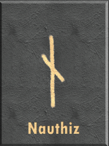 Nauð táknar illgirni, áþján, neyð og nauðung. Í galdri er hún notuð til að gera öðrum eitthvað til miska og það ástand getur varað lengi en einnig snúist gegn þeim sem galdrinum beitir. Hægt er að nota Nauð til góðs því hún táknar einnig stafi sem núið er saman til að kynda eld og bönd sem festa eitthvað saman en hún er vandmeðfarin og ekki fyrir byrjendur.
