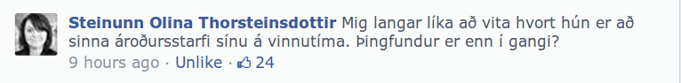 Formaður fjárlaganefndar kann þó fjölmiðlum litlar þakkir fyrir að auglýsa skoðanir hennar á viðskiptum fyrirtækisins EGF við Kvennablaðið því á ellefta tímanum í dag birti hún þessa athugasemd á Facebook:
