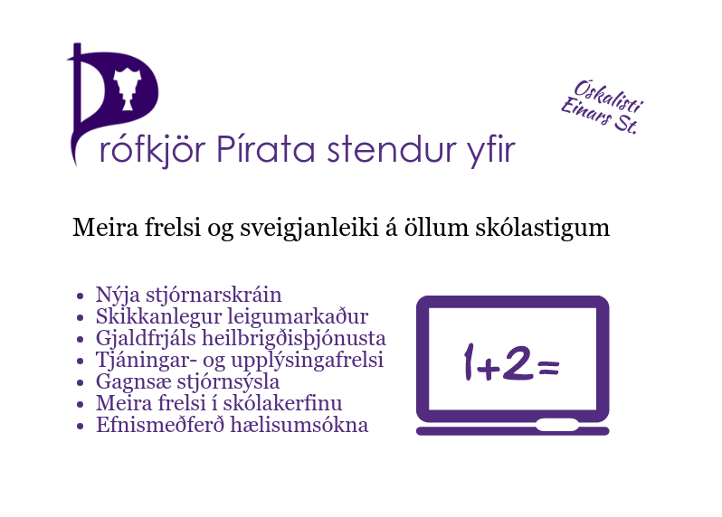 Ég er í framboði í prófkjöri Pírata sem nú stendur yfir. Eitt af því sem ég vil sjá á næsta kjörtímabili er meira frelsi og sveigjanleiki í skólakerfinu, í samræmi við nýsamþykkta mennta- og skólastefnu Pírata. Halda áfram að lesa